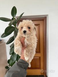 Disponibili due femminucce di Maltipoo toy di due mesi.Sì cedono alla nuova famiglia con libretto sanitario, vaccini e sverminazioni eseguite, microchip. Sì cedono ben socializzati, abituati alla traversina e crocchette Royal canin mini. Per info o venire a vederli dal vivo, prenotazione chiamare Sig.Davide 327.3544872
