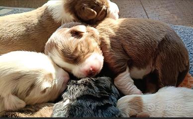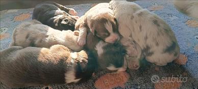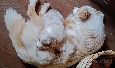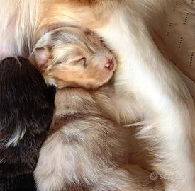 Cucciole occhi azzurri vari colori con red factor e coda lunga nate in famiglia da mamma red merle occhi azzurri con pedigree alta genealogia e padre black tricolor entrambi di nostra proprietà, sani, equilibrati e visibili. Le cucciole saranno cedute dal 20 gennaio al compimento dei 2 mesi con libretto sanitario, visita veterinaria, certificato di buona salute, tre cicli di sverminazione, vaccinazione polivalente, passaggio di proprietà e microchip.