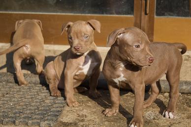 Disponibili subito al ritiro meravigliose ultime cucciole femmine di American Pitbull terrier in standard ukc, hanno 60 giorni, Red Nose Chocolate e champagne, Verranno cresciuti già in famiglia a contatto con bambini piccoli, socializzati.