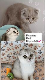 Allevamento serio ed affidabile dispone di meravigliose cucciole disponibili da subito di razza Scottish fold, i genitori sono tutti testati per le patologie di razza, effettuano controllo cardiaco annuale e sono monitorati dal veterinario a fine di garantire la maggior salute possibile dei genitori e di conseguenza dei cuccioli. Tutti i cuccioli sono ceduti con contratto di cessione da compagnia ( non da riproduzione ) con pedigree, chip già inoculato, vero togato stato buona salute veterinario, libretto sanitario con annotati vaccini e sverminazioni. I cuccioli sono ceduti con kit sabbia giochi e cibo sia umido che secco.