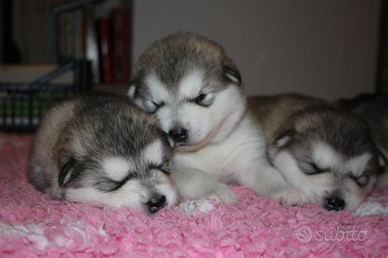 Disponibili cuccioli di Alaskan Malamute nati il 30 dicembre 2025, da genitori selezionati con test ufficiali per displasia, oculopatie e polineuropatia.