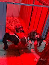 Disponibili bellissimi cuccioli di American Pitbull Terrier, nati da genitori selezionati per salute e carattere (linea UKC). I piccoli hanno attualmente un mese (nati il 25 febbraio) e saranno cedibili al compimento dei 75 giorni (2 mesi e mezzo) per garantire un perfetto svezzamento e socializzazione. Disponibili diverse colorazioni: 1 Red Nose maschio 400€ 2 Black Nose maschio-femmina 350-400€ Il prezzo (da 350€ a 400€ in base al soggetto) include un pacchetto sanitario completo: ? 2 Sverminazioni effettuate ? 2 Trattamenti antiparassitari ? 2 Vaccini ? Libretto sanitario veterinario ? OMAGGIO: Fornitura di crocchette per i primi giorni, per garantire un ambientamento senza stress nella nuova casa. cuccioli sono cresciuti in ambiente familiare, sono socievoli e molto tipici. Massima serietà. Si trovano a CASSINO (FR) Per foto singole o video dei piccoli e dei genitori (entrambe di mia proprietà), contattatemi su WhatsApp al numero: 3289641112 Angelo. VENITE A VEDERLI DAL VIVO!