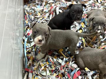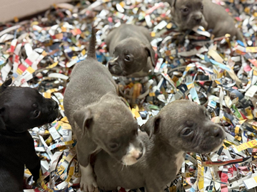 Vendo bellissimi cuccioli di amstaff i cuccioli sono già stati svezzati e quindi pronti per una nuova famiglia i prezzi partono da 300 per il nero 300 per il bianco e nero e 400 per i grigi