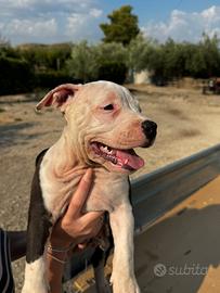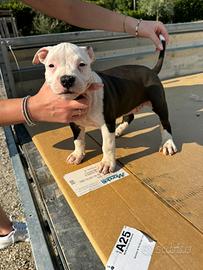 Allevamento amatoriale di American Staffordshire terrier mette a disposizione cuccioli di alta genealogia nati il 5 maggio. Tutti i nostri cuccioli provengono da genitori che sono stati attentamente selezionati per la riproduzione e verranno consegnati dopo i 70 giorni con microchip (iscrizione anagrate canina), ciclo completo di vermifugo, primo vaccino, pedigree ENCI FCI e libretto sanitario rilasciato dal veterinario. Nella penultima foto si puó visionare il padre e nell'ultima la madre, entrambi di mia proprietà e visionabili di persona. I locali in cui vivono sono ambienti sani in quanto vengono sanificati giornalmente. I nostri cani hanno un temperamento equilibrato e tranquillo perché i genitori vengono selezionati per carattere e mortologia. I cuccioli si trovano in Sicilia e verranno ceduti solo ad amatori della razza e persone che se ne sappiano occupare. Per qualsiasi informazione o domanda potete contattarmi qui sulla chat di subito o ancora meglio tramite chiamata telefonica al 3802872735