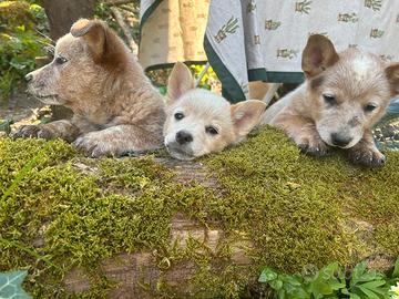 Sono disponibili cuccioli di Australian Cattledog rossi, maschi. Figli di Pluricampione Chuchip (22 titoli all'attivo tra Italia, Croazia, Spagna, Francia e altri) e di Multicampionessa Giovanile Anxia Dormiens Titillanda (TOP DOG Giovani 2024 e altri 4 titoli). Dimostrano l'equilibrio dei genitori, entrambi CAE-1, apertura a nuove situazioni grazie al Puppy sensor e a una socializzazione con persone, cani e gatti, ambienti, auto, studiata ad Hoc. Sono già testati BAER, tutta la cucciolata +/+ perfettamente udenti. Hanno pedigree, Chip, vaccino, sverminazioni e puppy kit. Pronti ad andare a casa raggiunti i 75 giorni!
