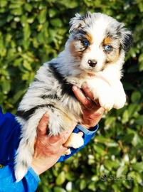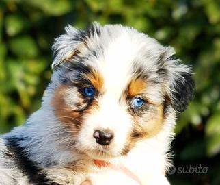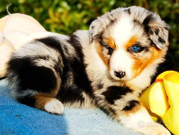 Disponibili alla prenotazione bellissima cucciolata di Australian shepherd,dopo i 65 giorni di vita dal 1 Febbraio. Disponibili solo maschietti Blue merle occhi azzurri. Coda lunga e NBT .Tutti Red factor.