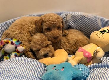 Cuccioli maschio di barboncino toy e nano albicocca. Nati e cresciuti in casa da privati. Hanno un carattere dolce e affettuoso, già abituati alla traversina. Si cedono sverminati, vaccinati, libretto sanitario e certificazione veterinaria di perfetta salute. Nati il 29 gennaio, sono pronti per andare nelle nuove famiglie. Per informazioni 3427647960 oppure 339 1055631.