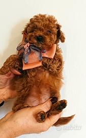 Disponibile bellissima femminuccia di barboncino Toy di 50 giorni.genitori entrambi red, verranno ceduti con primo vaccino e sverminazioni. Per info 3886573857