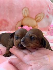 Proponiamo deliziosi cuccioli di bassotto, taglia nana e kaninchen, pelo corto, figli di pluricampioni di bellezza, ciclo dei vaccini completo, pedegree Enci, certificazione medica.", deposito DNA, EFFETTUATI TEST GENETICI PER MALATTIE DI RAZZA. Saremmo lieti di ricevervi per conoscere i nostri piccoli, genitori e il luogo dove sono nati e cresciuti. Scriveteci o molto meglio contattateci telefonicamente per un appuntamento o per ogni altra informazione.