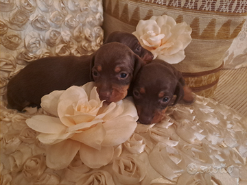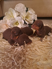 Disponibili bellissimi cuccioli di bassotti cioccolato kaninchen, genitori entrambi di mia proprieta ' e visibili , i cuccioli saranno ceduti con sverminazione vaccino con libretto sanitario e certificato di buona salute .per inf. Roberta massima serieta' .