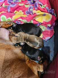 Vendiamo 3 cuccioli bassotto nati il 28/12/202 n.2 maschi e n.1 femmina solo ed esclusivamente a amanti animali dimostrabile!!!! Si prega di astenersi a chi non puo' dimostrare tali requisiti!!!! Prezzi: maschio arlecchino 850 euro femmina nera euro 600 maschio nero euro: 600 saranno ceduti non prima di 60 giorni