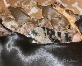 Allevamento amatoriale dispone di cuccioli di Bassotto Tedesco nano o standard a pelo corto, nei colori arlecchino silver, arlecchino cioccolato, nero focato, cioccolato e fulvo, tutti i cuccioli vengono ceduti dopo i 75 giorni con primo vaccino, sverminati, microchip, pedigree Enci e kit puppy. Per tutte le informazioni chiamare o mandare un messaggio WhatsApp al numero 3343172321