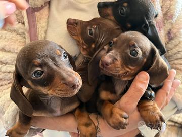 Cuccioli di bassotto nati e cresciuti in casa . Si cedono con doppia sverminazione, primo vaccino e microchip. I cuccioli sono disponibili sia maschi che femmine di ciascun colore, si trovano a caserta ma arrivano in tutta italia tramite trasporto autorizzato. Per qualsiasi informazione o richiesta contattare in privato.