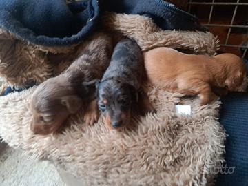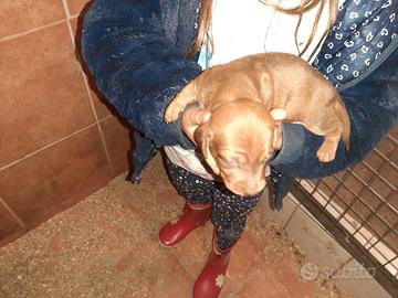 Da prenotare: maschietto e femminuccia rosso cervo, maschietto cioccolato, femminuccia nero focato e maschietto arlecchino cioccolato. Questi cuccioli saranno ritirabili tra un mese.