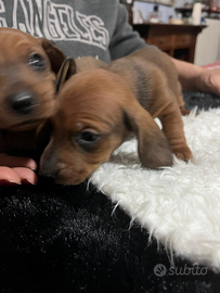 Ultimo maschietto e torna disponibile una femminuccia di cuccioli di bassotto nano tedesco pelo raso fulvi,nati il 17 ottobre,saranno consegnati tra Natale e Capodanno appena saranno indipendenti dalla mamma..verranno consegnati completamente svezzati,con due cicli di svermante,1 vaccino,microchip e libretto sanitario di sana costituzione e assistenza mia post consegna a vita per qualsiasi dubbio