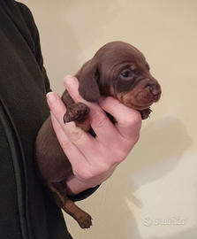 Sono disponibili alla prenotazione due maschietti di bassotto a pelo corto, uno nero focato e uno cioccolato.