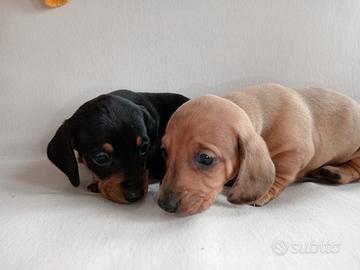 Bellissimi cuccioli di bassotto un maschio nero e una femmina fulva verranno ceduti al compimento dei 60 giorni con vaccino microchio, sverminazione e visita veterinaria.