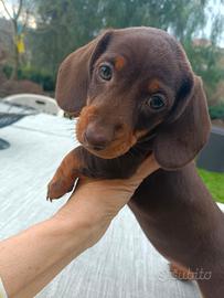 Si cedono bellissimi cuccioli di bassotto tedesco a pelo corto color cioccolato. Nati 04.01.26. Vaccinati, con il Pedigree ENCI