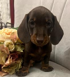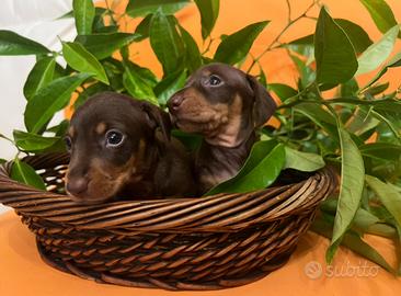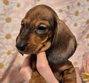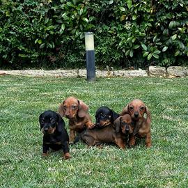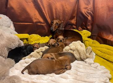 BASSOTTI TEDESCHI CUCCIOLI - ALTA SELEZIONE Disponibili cuccioli a pelo corto, taglia nana e kaninchen, con pedigree ENCI, DNA depositato, test genetici e certificazione veterinaria. Affidati a 90 giorni con vaccini completi. Genitori e ambiente sempre visibili. Cessioni e prenotazioni solo dopo visita/colloquio conoscitivo. No spedizioni - possibile consegna diretta. Contattaci subito ? Paola Martini Allevamento DIENGEL'S