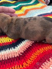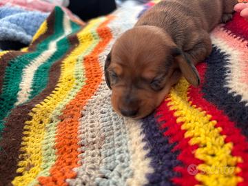Cuccioli di bassotto tedesco a pelo raso , disponibili in due colorazioni: Alrlecchino brown silver e Nero focato . Genitori di razza ed entrambi di mia proprietà. I cuccioli sono cresciuti in casa e saranno pronti per le famiglie al compimento dei 60 giorni con microchip , vaccino e svermati .