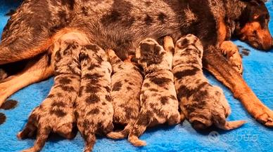Cuccioli Beauceron (cane da Pastore di Beauce) arlecchino nati il 28 Novembre 2025: disponibili 3 maschi arlecchino, 1 femmine arlecchino, e 1 femmina nero focata; genitori selezionati a livello morfologico e caratteriale, visibili presso di noi : Marvel Argentée des Gardiens de Rome RIPRODUTTORE SELEZIONATO ENCI x CH. LEON des Gardiens de Rome CAMPIONE ITALIANO RIPRODUTTORE