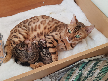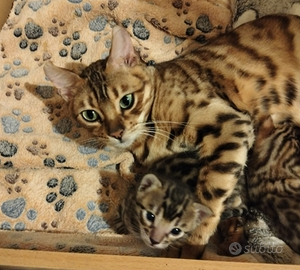 Cuccioli razza Bengala nati il 29.12 cresciuti in casa e ben socializzati. Vengono ceduti con pedegree Afsi anche for breading, microchippati, doppia sverminazione, doppia vaccinazione, nutriti con cibo di eccellente qualità, sanissimi. Genitori entrambi di mia proprietà e visibili. Assistenza e consulenza post vendita. kit cucciolo compreso . ?1200