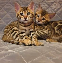 Cedesi cuccioli di gatto bengala di tre mesi pronti da subito ad andare nella nuova famiglia abituati al tiragraffi e alla lettiera verranno ceduti sverminati vaccinati e pedigree da compagnia