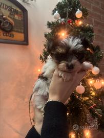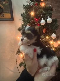 Cuccioli di Yorkshire Biewer di taglia molto piccola di 1 mese e mezzo cercano una famiglia amorevole.