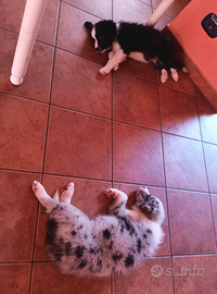 Il 6 luglio sono nate 4 meraviglie. Si ripropone una cucciolata già fatta in precedenza tra i primi due esemplari di Border in The Wild: Tokyo Red Merle giocherellone e allegro e Alabama bianconera elegante e dolcissima. I due esemplari si equilibrano in modo ottimale e i cuccioli della cucciolata precedente crescono bene e le famiglie sono soddisfatte. Questa volta sono nati un maschio e una femmina bianconeri, un maschio Blue merle e una femmina blu. Saranno cedibili a partire dal sessantesimo giorno con vaccinazioni, sverminazione, pedigree ENCI, puppy kit, microchip. I genitori sono entrambi testati geneticamente e lastrati per anche e gomiti. Siamo a Torre Pellice, in Piemonte, ma valutiamo consegne in tutta Italia.