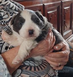Vendesi stupendo cucciolo di border collie blue white maschietto .il cucciolo è nato il 10 di marzo:potrà essere consegnato alla nuova famiglia amorevole dopo il10 maggio.I genitori sono in possesso di test genetici e esenti da displasia anche e gomiti [A0].Il cucciolo sarà ceduti con pedigree Enci, certificazione di buona salute,microchip,sverminato,con primo vaccino.Per info contattare Andrea al numero 3384699570[orari serali. Oppure whatsapp] verrete ricontattati,possibilità di consegna in Italia con mezzi autorizati