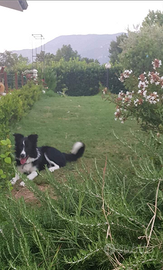 Ultima cucciola femmina di border collie con pedigree ENCI nata il 10 ottobre madre bianco nero padre bianco marrone come da foto con pedigree entrambi verrà data vaccinata sverminata con prima visita veterinaria effettuata Microcippata e con pedigree contattare 331 4443280 prezzo 400 leggermente trattabile NO PERDITEMPO