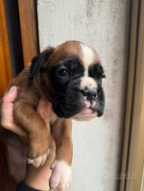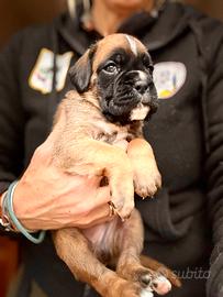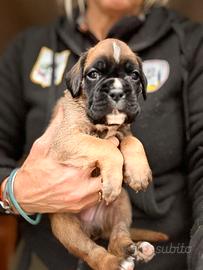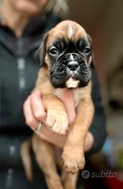 Cuccioli boxer di alta qualità, disponibili una femmina fulva con bianco, un maschio fulvo e due femmine fulve con maschera scura, nati il 26 dicembre 2025, cedibili dal 24 febbraio. Genitori di alta genealogia con esami sanitari ufficiali perfetti, Dna depositato, entrambi visibili in allevamento, il papà è pluri campione giovane di bellezza.