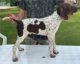 Cuccioli Bracco Francese tipo Pirenei nati il 14/02/2025 da fattrice Aime'e ROI 23128079 e da stallone Gaston del Guardengo ROI 13138583 Alta linea di sangue figli di campioni del mondo, ottimi per la caccia, tartufi, compagnia. Due maschi ancora disponibili, i cuccioli saranno ceduti con pedigree, sverminati,vaccinati, microchip e certificato veterinario del taglio della coda.