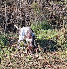 Cuccioli di bracco pointer selezione da 20 anni sulla cerca del tartufo bianco già scavano sui posticci con riporto un maschio roano marrone ed una femmina roano nera, 4 mesi con 4 sverminazioni, 2 vaccini e regolare microchip identificativo. La mamma è quella in foto bianco nera il padre quello roano nero. Pronti per l'addestramento sul marzuolo.