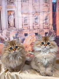Due maschi di 3 mesi di età con vaccini, pedigree e tutti documenti cercano la famiglia. La razza British a pelo lungo, colore black golden tabby, carattere molto tranquillo è docile.