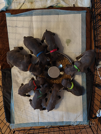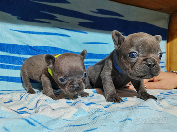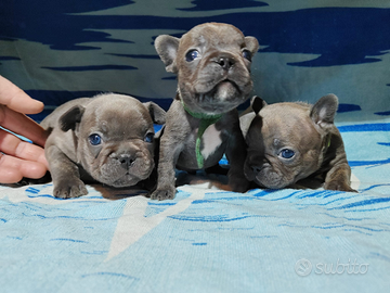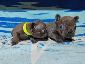 Disponibili tra circa un mese cuccioli di bulldog francese ...saranno consegnati dopo 60 gg dalla nascita. Disponibili maschi e femmine tutti grigi (blu). Verranno consegnati sverminati vacinati e microchippati.