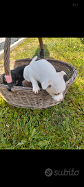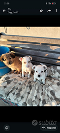 Cuccioli taglia piccola, nati il 22 ottobre, marrone e bianco con macchie nere maschi, quella tutta bianca è femmina.
