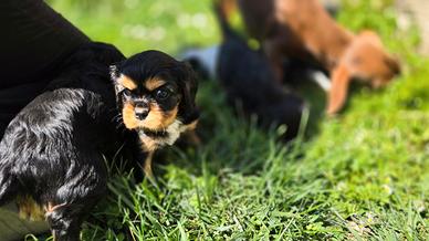 Disponibili alla prenotazione 4 cuccioli di cavalier king, disponibili a fine maggio, la mamma è black and tan e il papà è blenheim. I cuccioli sono 2 femmine black and tan, 1 maschio black and tan e 1 femmina tricolore. Verranno ceduti dopo il compimento dei 60 giorni con 2 sverminazioni, microchip, libretto sanitario, passaggio di proprietà, vaccinazione e visita veterinaria. I cuccioli non hanno il pedigree perchè la mamma ne è sprovvista.
