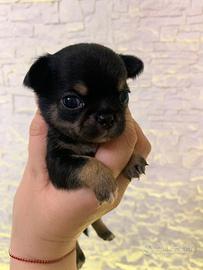 Cucciolo chihuahua maschio a pelo corto nero focato con pedigree ENCI,nato il 24 novembre per info scrivetemi o chiamatevi