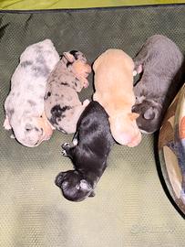 "Disponibili splendidi cuccioli di chihuahua, tre maschi e due femmine. Vari colori: due merle, uno biondo , uno nero e uno grigio. DAVVERO STUPENDI uno più bello dell'altro, Dolcissimi di carattere, NATI IL 17/03/2026 verranno consegnati dopo 60/80 giorni svezzati e sverminati e microcippati! Perfetti per la famiglia anche con bambini. Per info e prezzi contattatemi!" Alberto 3477860020 puoi venire a vederli e bloccarli con una caparra.