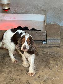 Disponibile fantastico maschio di cocker nato il 21/03/26. Sarà disponibile verso fine maggio. Genitori entrambi cacciatori e cani da compagnia. Il cucciolo ha ciclo completo di sverminazioni, vaccinato, con microchip e con il certificato di buona salute. NON HA IL PEDIGREE