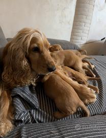 Cuccioli di cocker spaniel nati il 16 febbraio colore fulvo miele come vedete nelle foto ..i genitori sono entrambi fulvo miele di alta genealogia la mamma allevamento francini entrambi tenuti a casa e esenti da qualsiasi malattia ereditaria verranno ceduti con ciclo completo sverminazione primo vaccino libretto sanitario e attestato di buona Salute per qualsiasi info non esitate a contattare