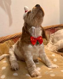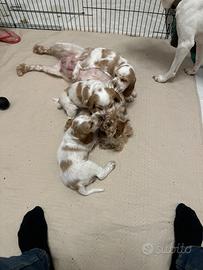 Vendo ultimo cucciolo di Cocker Spaniel Inglese bianco-arancio nato il 18/10/25. Disponibile da subito, vengono venduti vaccinati, con esami feci regolari, microchip e PEDIGREE (malattie genetiche escluse). In foto anche i genitori.