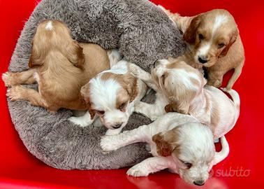 Disponibili cuccioli cocker spaniel nati il 24 gennaio. Sono 2 maschi fulvi, 2 maschi bianchi/arancio e 2 femmine bianche/arancio. I cuccioli vengono ceduti sverminati, con primo vaccino, libretto veterinario, microchip e passaggio di proprietà. Se veramente interessati , per maggiori informazioni, contattare telefonicamente o tramite whatsapp il seguente numero 3491925095 Francesco