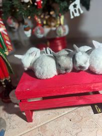 Splendidi cuccioli di conigli ariete nano per minilop, diverse colorazioni alcuni con occhi azzurri cedibili a svezzamento completato contattare per altre info