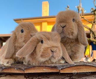 Cuccioli di coniglio ariete nano e ariete minilop in purezza, alta selezione per morfologia e genetica, colorazione fulvo, crema, blu, bew, bew pezzato. Genitori visibili. Cuccioli docili e abituati alla lettiera. Ceduti con trattamento coccidiostatico e trattamento antiparassitario esterno. Ceduti con dossier illustrativo sulla vita del futuro cucciolo. Maschi e femmine disponibili Allevamento di pura razza giogio_conigli Possibili consegne in tutta Italia