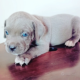 Disponibili cuccioli di cane corso italiano con colorazione grigio blue e nero. Verranno consegnati dopo i 70 giorni con Pedigree ENCI FCI, documentazione sanitaria, microchip, libretto sanitario, vaccinazioni, svermati, svezzati e certificato di sana e robusta costituzione. Il corso è un cane per la famiglia e docile con i bambini, molto intelligente e viene utilizzato per la Pet Therapy. Chi fosse interessato mi contatti in privato