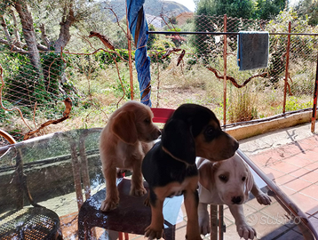Vendo cuccioli di 50 giorni incrocio madre briquet vanden e padre incrocio segugio del giura Beagle. Ottimi per caccia grossa. No perditempo. Solo contatto telefonico.