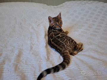 Cuccioli bengala disponibili da subito. Si cedono sverminati, ciclo vaccinale completo, microchippati. Pedigree ANFI da compagnia, con possibilità di pedigree da riproduzione ad un prezzo diverso. Padre testato per le malattie genetiche pra-b e pk-def, cuore controllato con ecocardio. Mamma nata da noi. Per maggiori informazioni, per l invio di foto e video contattatemi al 3793130315