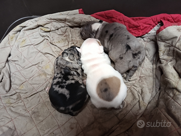 Vendo splendidi cuccioli di american bully merle,due femmine ed un maschio! I cuccioli,saranno ceduti alla fine di febbraio a 90 giorni con primo vaccino e svermati! La richiesta è 700? a cucciolo! Consigliati a chi cerca un e un cane di medie dimensioni da poter tenere anche con bambini visto la loro indole buona, soprattutto visto anche i genitori con un carattere d'oro! Contatto su WhatsApp al 3664499569 per qualsiasi informazione!!!